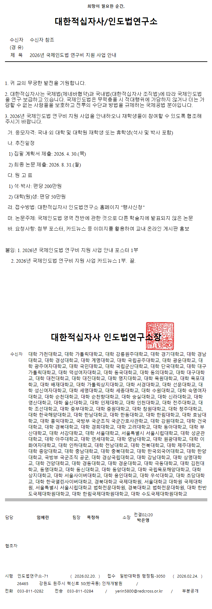 2026년 국제인도법 연구비 지원 사업 안내