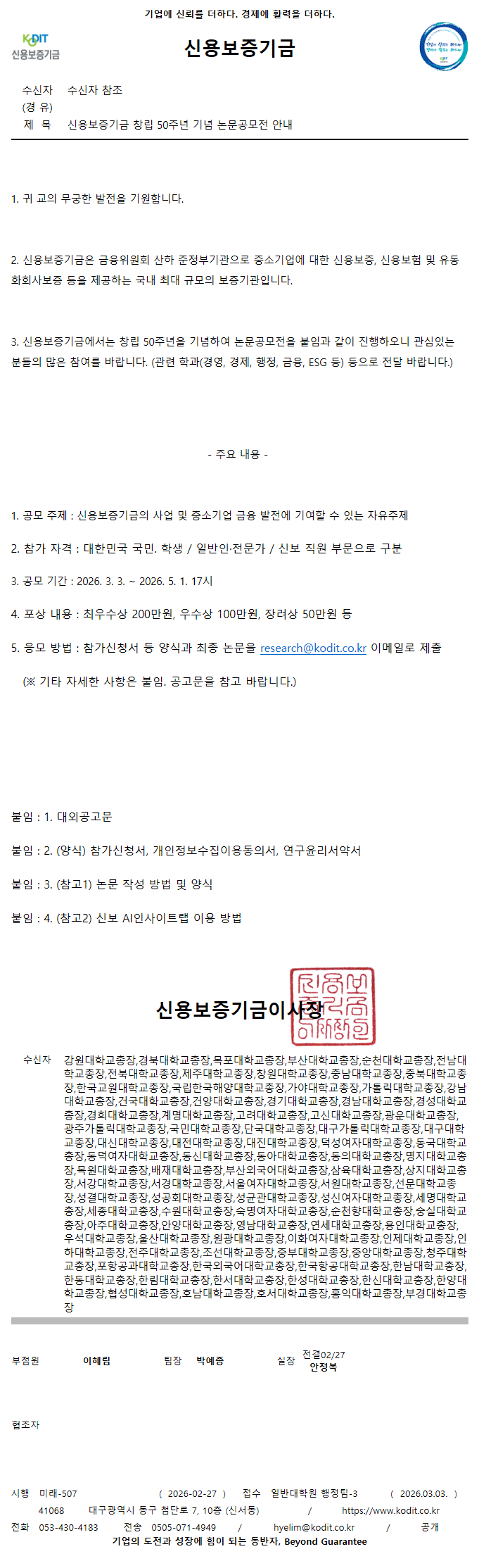 신용보증기금 창립 50주년 기념 논문공모전 안내