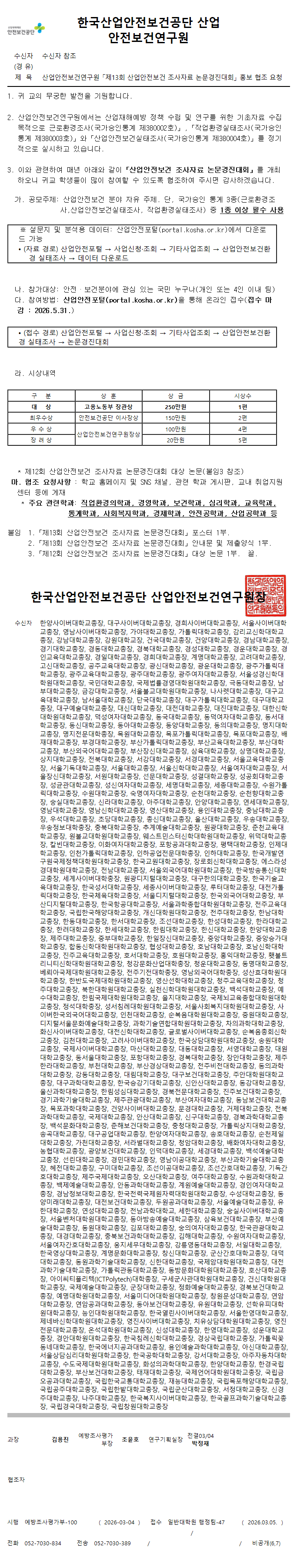 산업안전보건연구원 「제13회 산업안전보건 조사자료 논문경진대회」 홍보 안